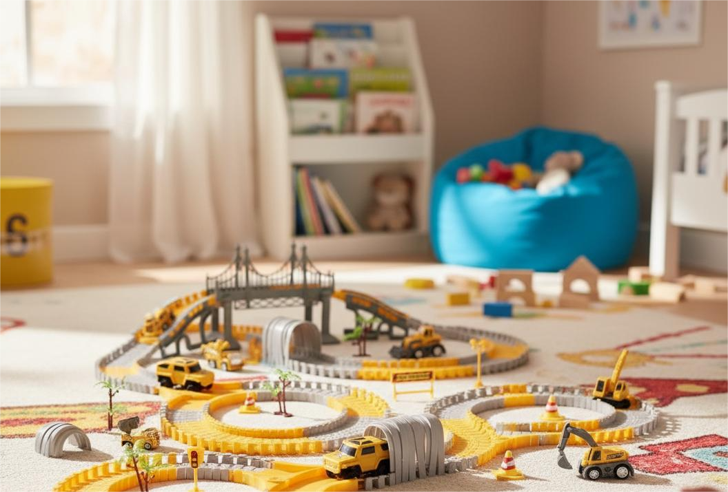 1Pc 340Pcs Construction Race Track Set Kids DIY Construction Toys STEM Flexible Car Track Playset Gift For Toddlers Boys Aged 3 4 5 6 Year Old